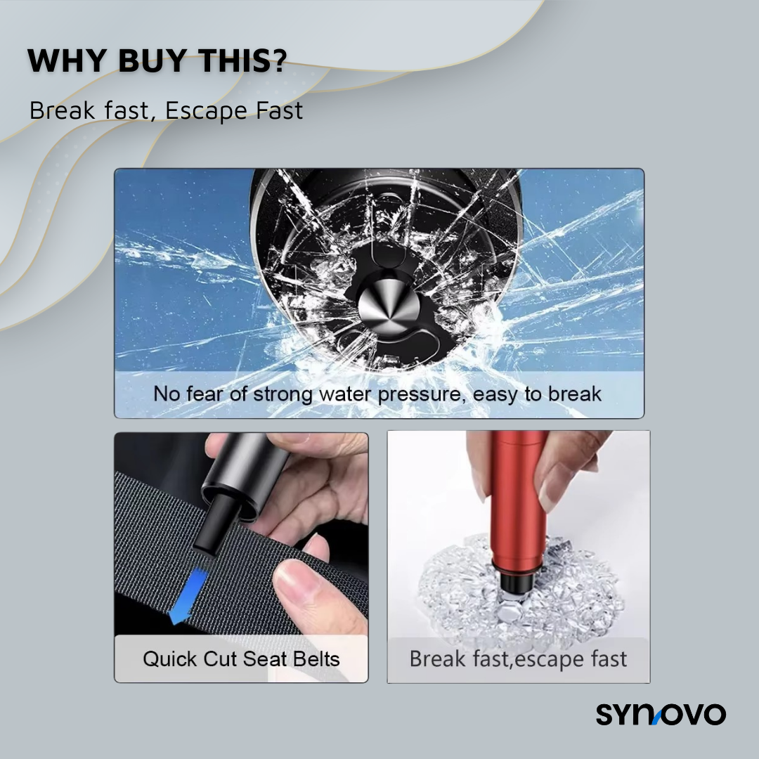 When every second matters, SafeBreak™ gives you the power to escape instantly. Its tungsten steel tip shatters car windows on impact, while the built-in cutter slices through stuck seatbelts in one motion. Compact, durable, and made for real emergencies.
