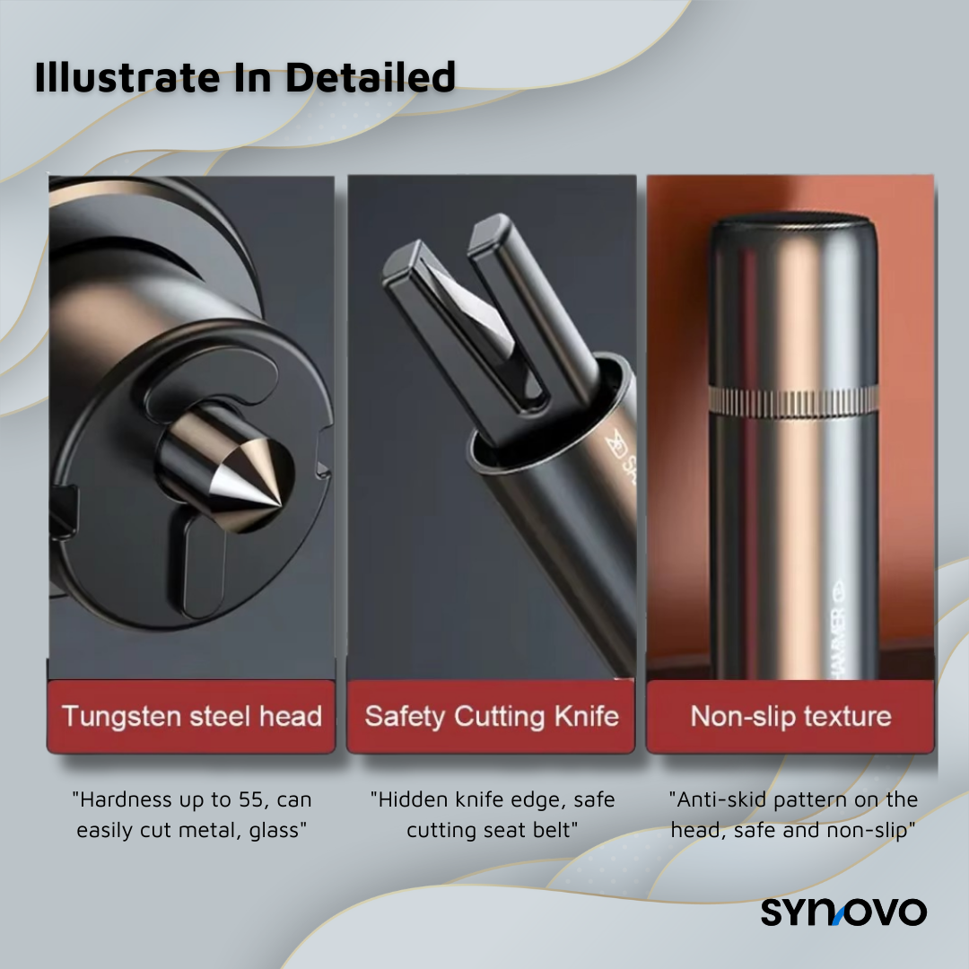 ✓ Built-In Seatbelt Cutter – Sharp, protected blade for quick escape.