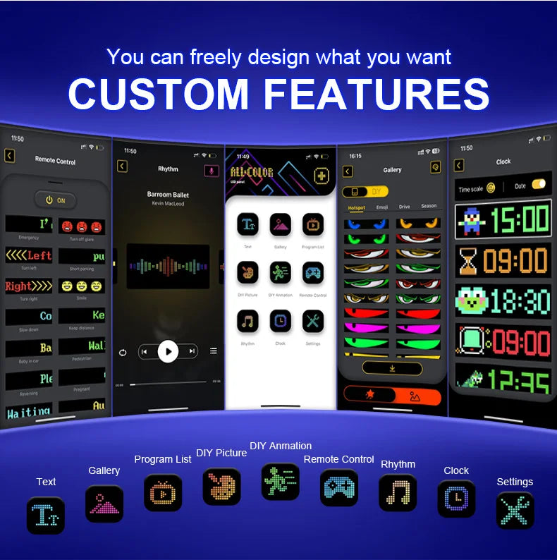 【Smart APP Control】Connect the LED matrix through the APP, you can DIY design text, patterns, animations according to your own needs and scenes, and you can also adjust the brightness and speed to perfectly meet your needs.