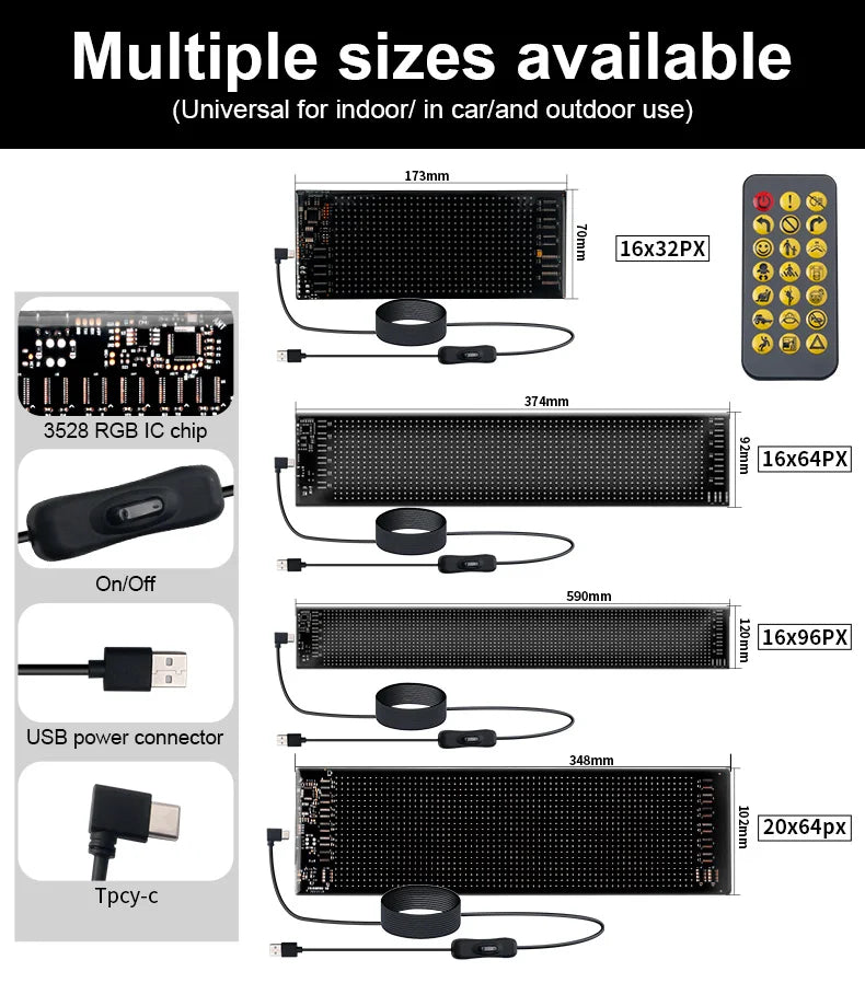 【Flexible Circuit Board USB Plug Design】The LED matrix is thin and light, and can be bent and folded at will, the usb plug design is more portable and has a wider range of applications, 3M tape is also included in the product, which can be attached to the wall or other objects as you like.