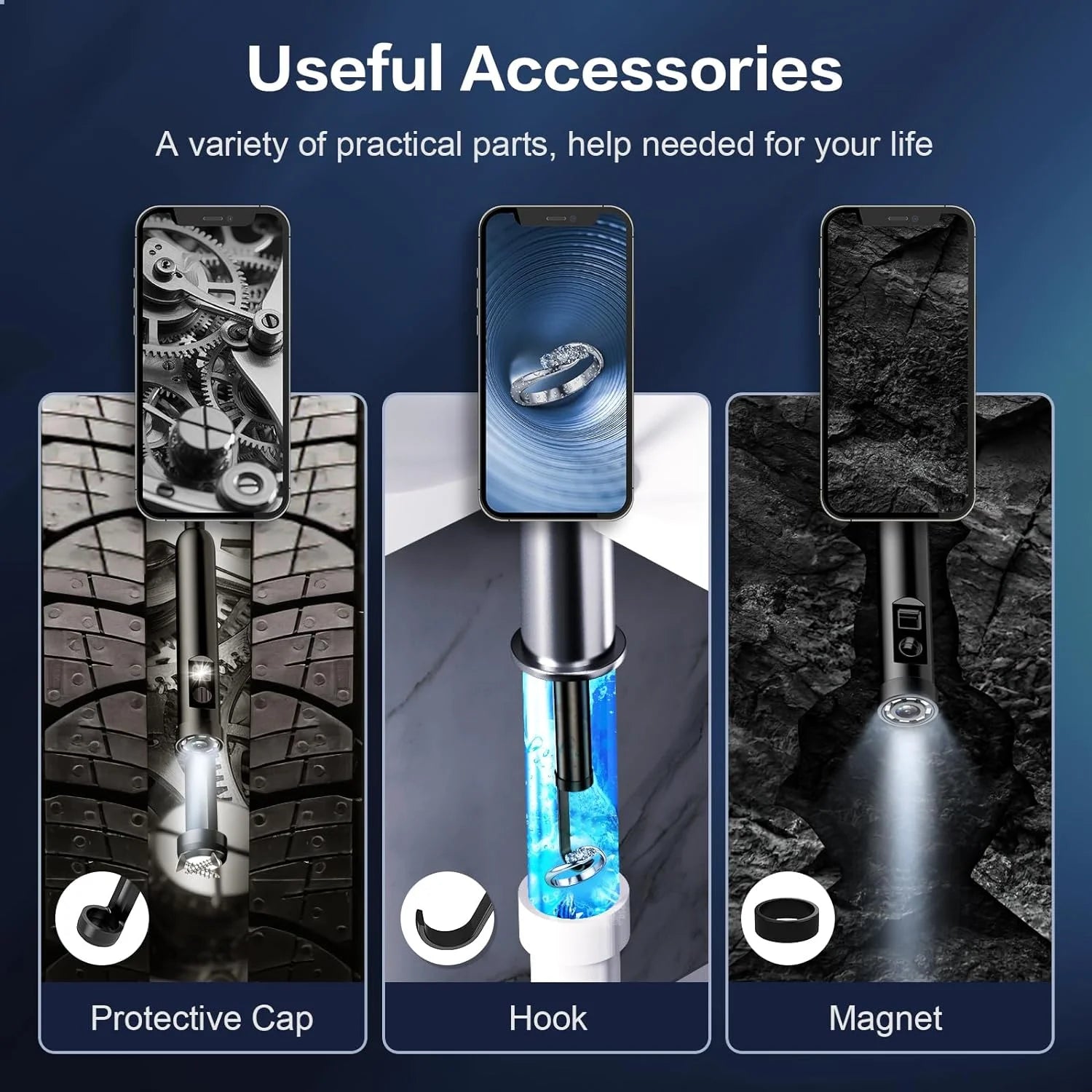 ✓ LED-Lit Flexible Cable – Bright, adjustable lighting for dark spaces