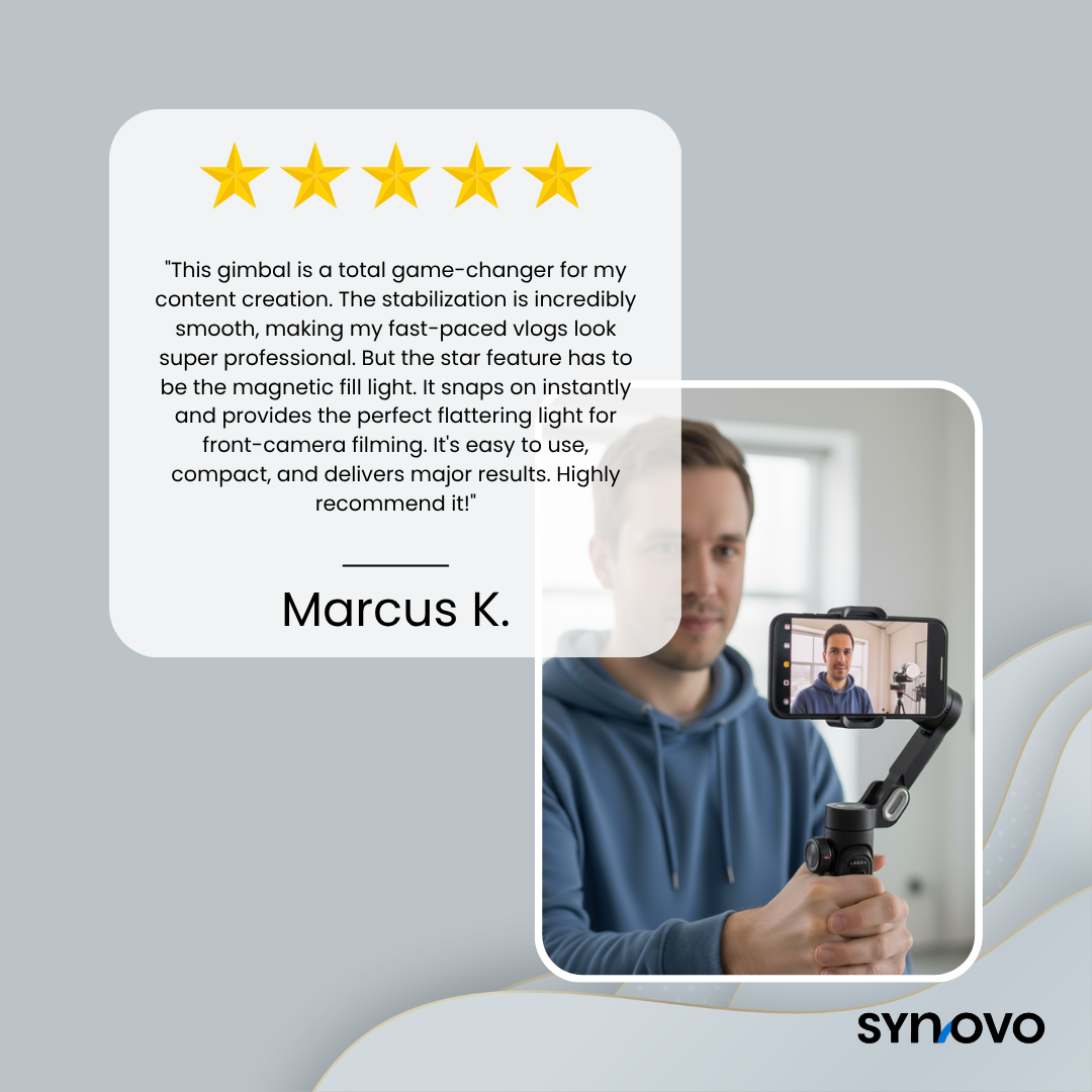 Transform your phone videos into smooth, professional-quality shots with SteadyShot™ Pro Gimbal. Designed for creators who are always on the move, it delivers rock-steady stabilization, perfect lighting, and effortless control—all in one sleek, portable design.